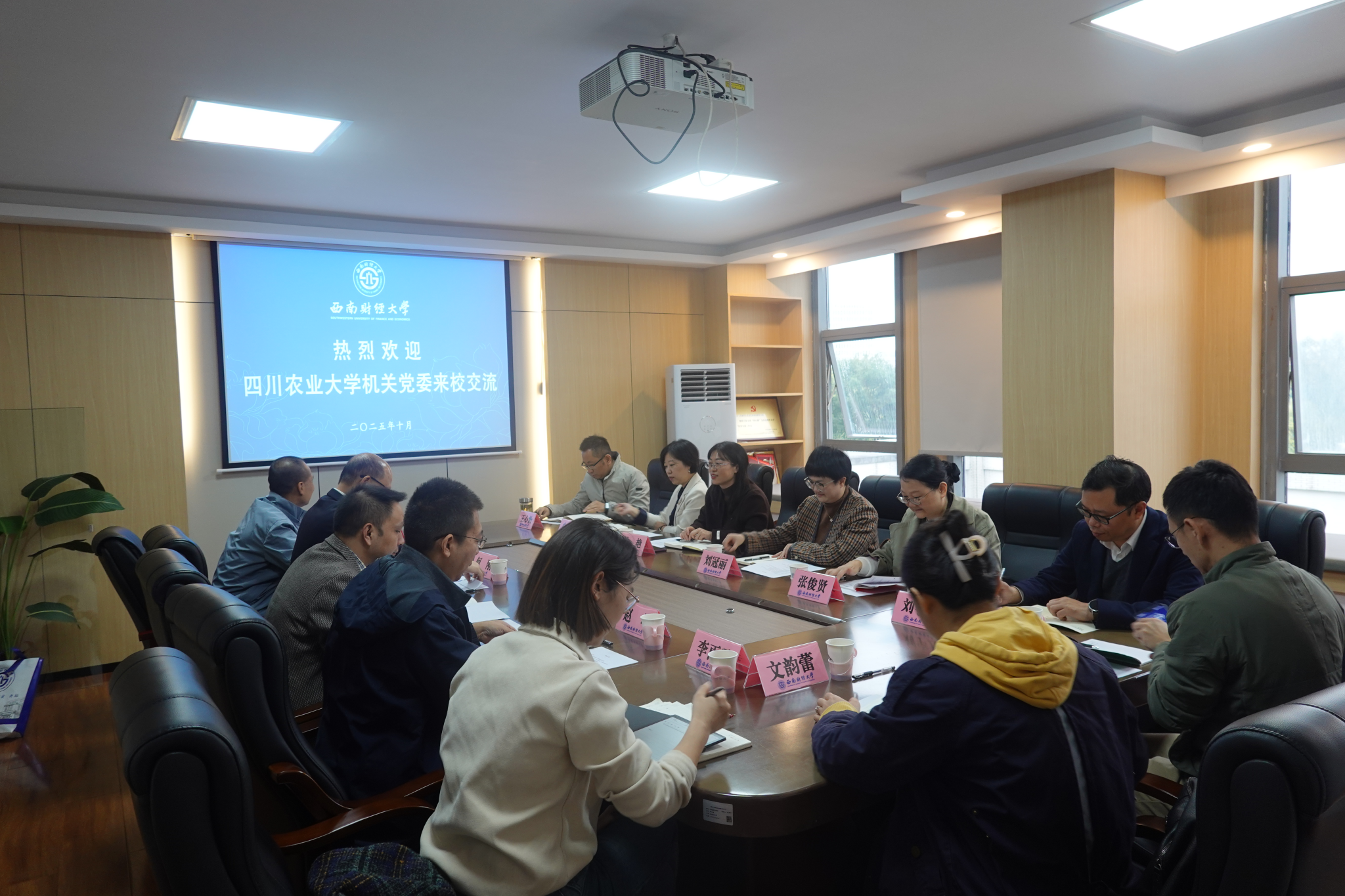 双方还围绕机关党委作风建设、跨校党建资源共享、机关干部队伍建设等进行了深入交流,并实地参观了西南财大习近平经济思想研究院,直观感受其“党建引领发展”的实践成果。