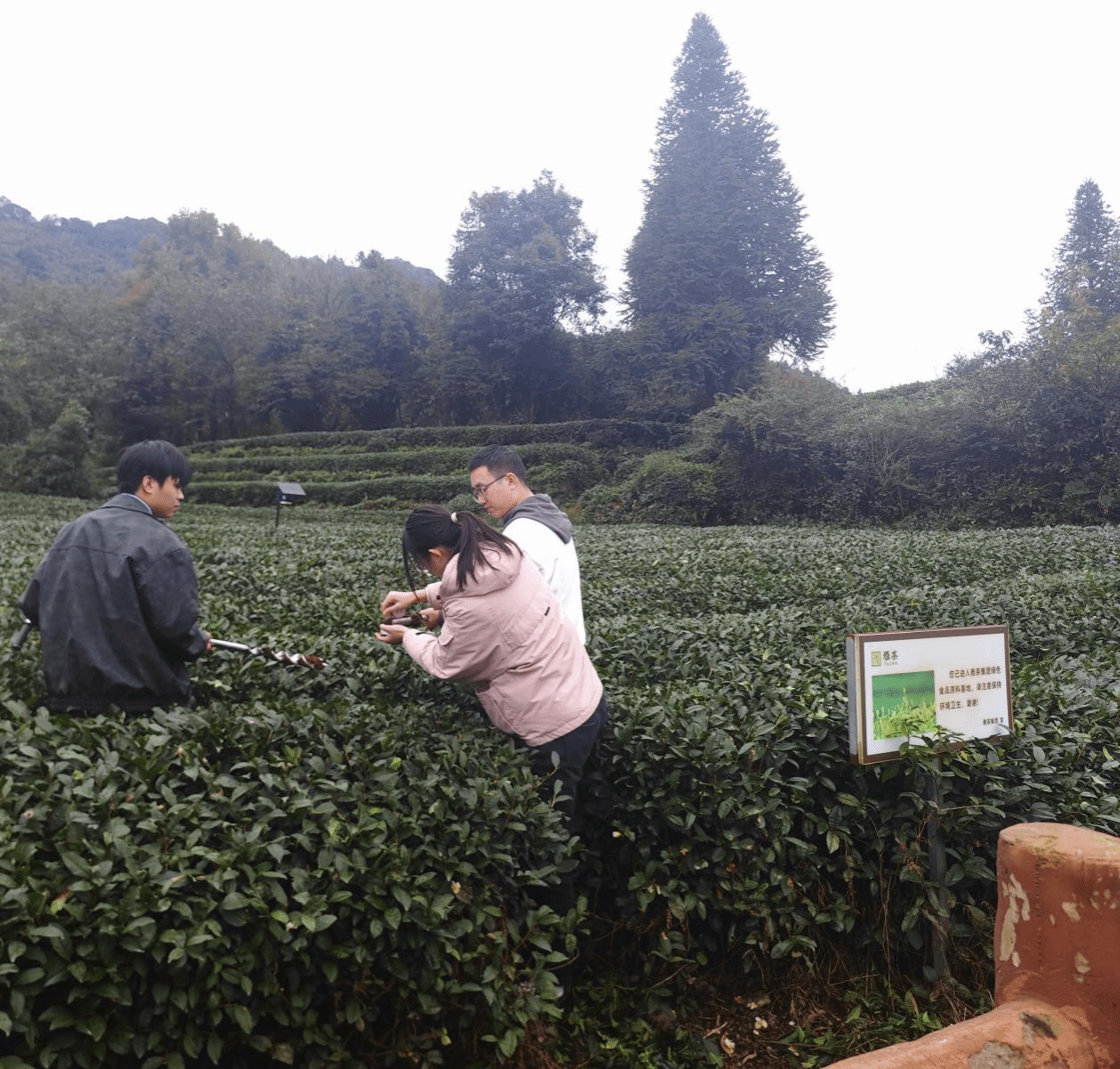 在王睿茜同志的带领下,支部党员代表们深入雅茶集团有机茶原料基地、绿茶厂和藏茶厂生产包装车间、智能仓储车间;雅茶文化展厅、产品展厅、电商直播区等地开展参观调研。双方结合农业水利工程专业知识,针对茶园灌溉模式优化、土壤墒情监测、生态保护措施等茶园生态管理问题进行了深入研究,并进行了分点土壤取样。采集的样本将送往学院实验室进行理化分析,分析结果将反馈给企业,作为肥水管理的依据和决策参考。此举不仅为党支部党员后续科研项目“基于生物炭的土壤酸化与镉污染双驱改良及茶叶安全保障”研究提供了坚实的基础数据支撑,而且有效促进了专业理论与产业实践的精准对接。丁明豪强调:“校企党建联建是推动技术创新、促进产业升级的重要纽带,为学生将专业知识转化为实践能力搭建了优质平台。未来,双方将进一步加强交流合作,探索党建引领地方发展的合作新模式,共同推动技术创新、促进产业升级、促进乡村振兴。”