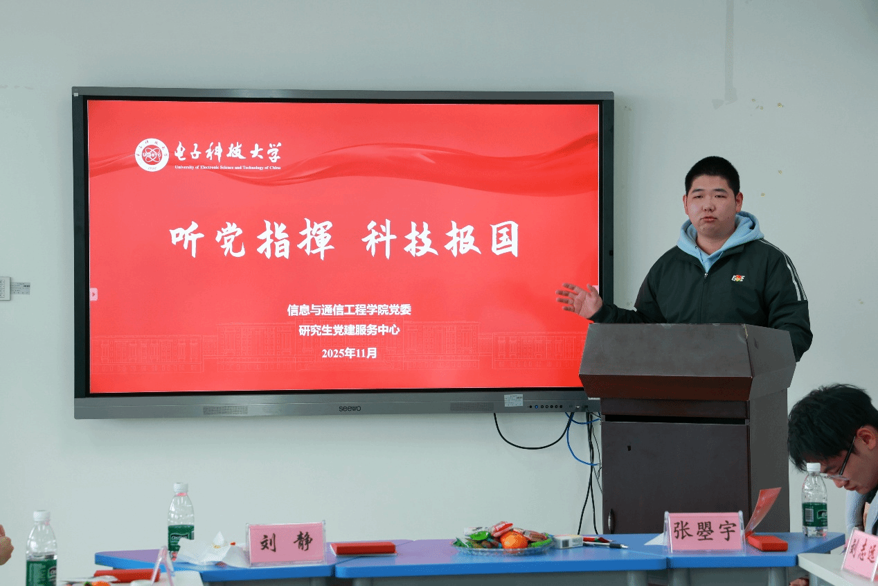 活动聚焦“党建经验互鉴”主题,双方围绕支部建设进行了深入的专题分享。电子科大信息与通信工程学院党建服务中心主任李茂以“听党指挥 科技报国”为题,系统介绍了学院党团组织架构,重点分享了“科技赋能服务、党建引领成长”特色模式下的党建创新实践;马克思主义学院党团服务中心副主任、研究生第一党支部书记周朝晖结合学院学科特点与支部实际,介绍了台账化管理、科研诚信教育等特色做法,通过规范党员成长记录、常态化开展科研诚信主题党日等活动,推动党团建设与学科服务深度融合;电子科大信息与通信工程学院网络工程系研究生第六党支部书记刘伟则详细介绍了其支部作为校级“样板支部培育单位”的建设路径,以志愿服务为抓手,推动党建工作与社区服务、专业实践紧密结合,充分展现了“党建+服务”的生动实践。