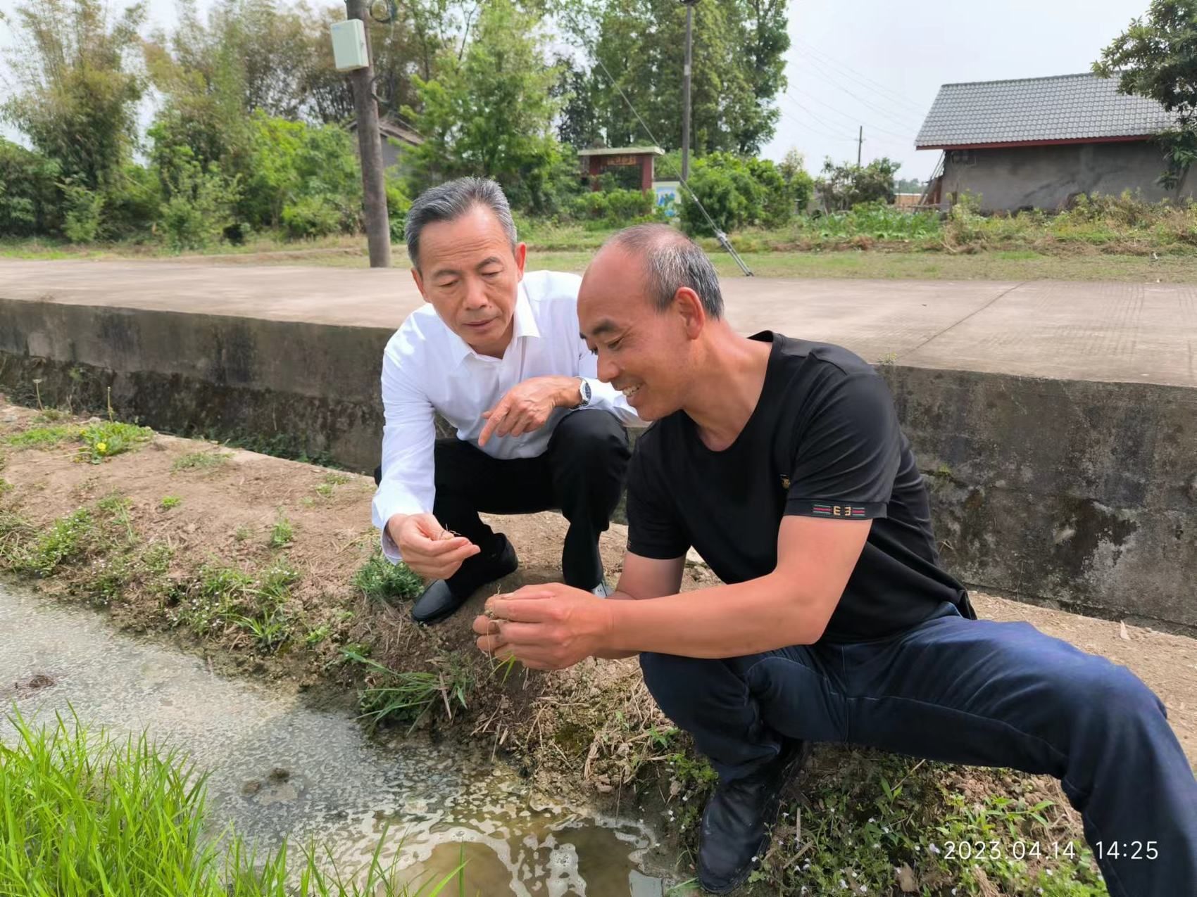 马均与种粮人一起聊稻子。