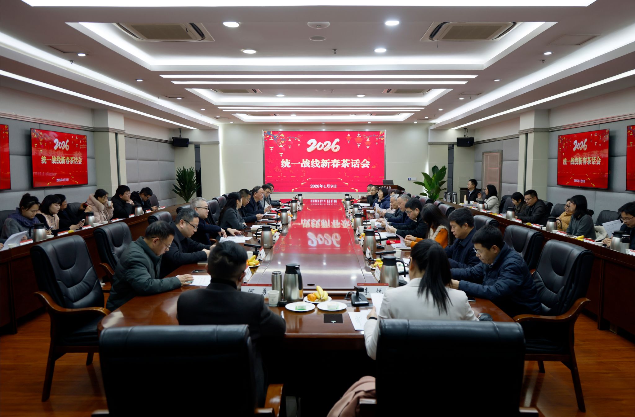 1月9日下午,学校2026年统一战线新春茶话会在成都校区举行。校党委书记刘登才,校党委副书记张强,校党委常委、统战部部长侯永翠,学校各民主党派、统战团体负责人,党外教师代表,各级人大代表、政协委员及部分二级党组织书记代表等40余人欢聚一堂、喜迎新春。茶话会由张强主持。